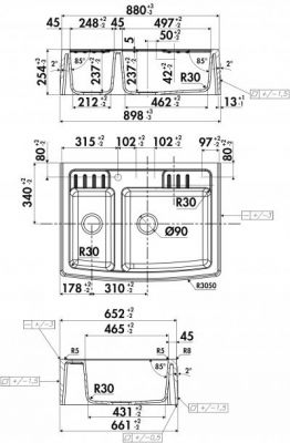 Evier EV9529 Esprit Chambord à poser Esprit Chambord 2 bacs