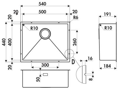 Longueur 440 mm x Largeur 540 mm x Profondeur 191 mm