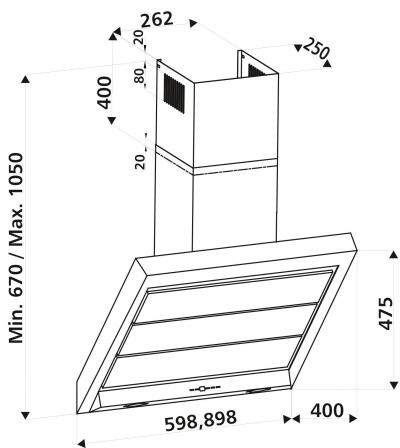 Dimension de la hotte : Largeur 598 mm x Profondeur 475 mm