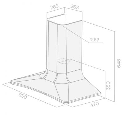 Dimension de la hotte : Largeur 850 mm x Profondeur 684 mm